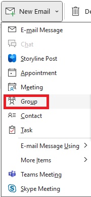 Note: If you are using the Simplified Ribbon, click the arrow next to "New Email" and select Group.