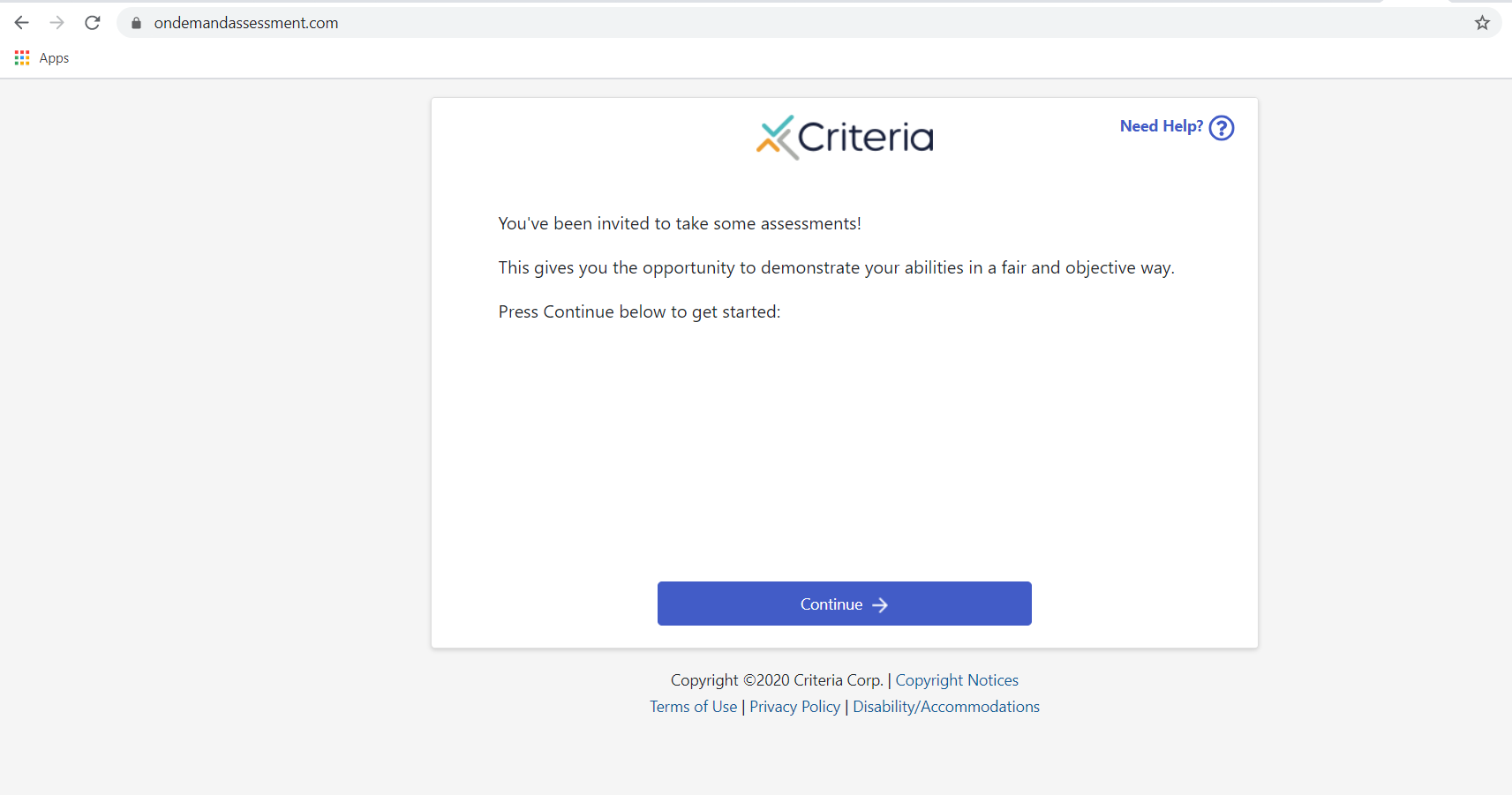Background: Criteria Corp. is a company that creates Pre-Employment Testing Software.  In some of the Divisions of VBC we use a website called https://ondemandassessment.com/  to do pre-employment testing.