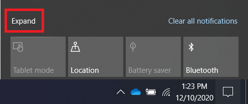 1. Left-click on the action center icon. It's represented by the speech bubble icon in the lower right corner of the screen.