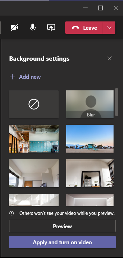 - When you have selected the background you want, click on Apply and turn on video.