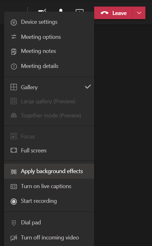 - From the drop-down menu, click on Apply background effects.