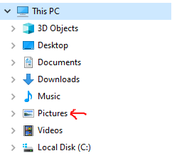 - Navigate to your "Pictures" folder. This can be found under "This PC" within windows explorer.